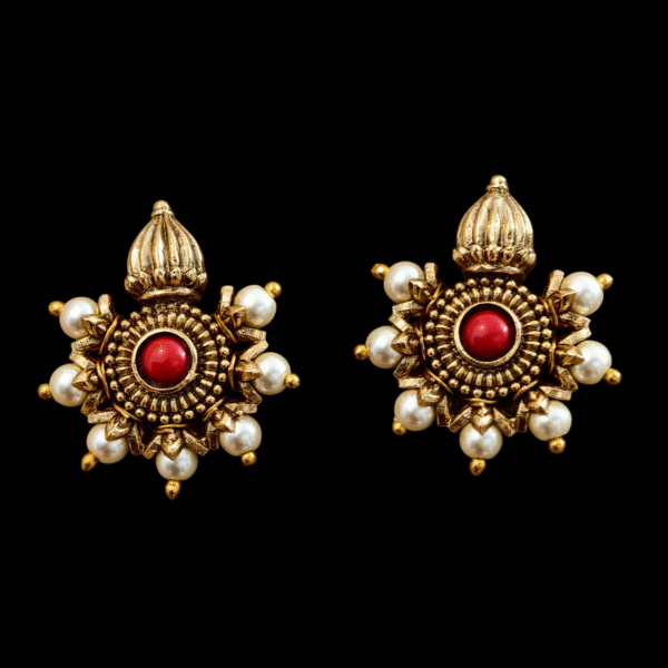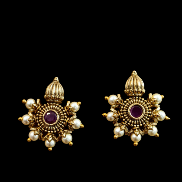 Antique finish ruby with pearl pushback studs