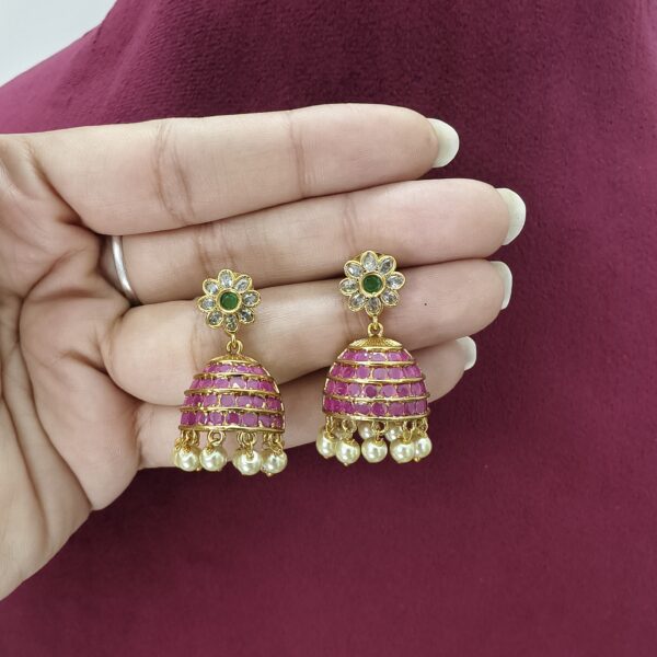 FJ1850 UNCUTSTONE FLOWER STUD WITH RUBY JHUMKA PUSHBACK