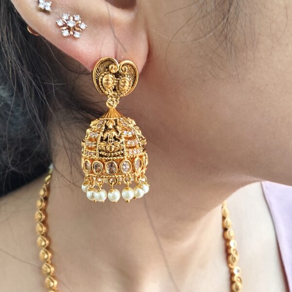 fj1966 antiqur finish lakshmi dollar coin drops long haram with pushback jhumkas