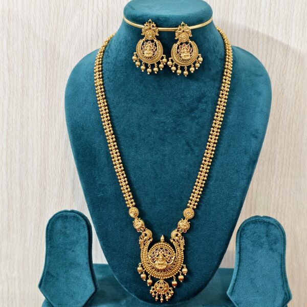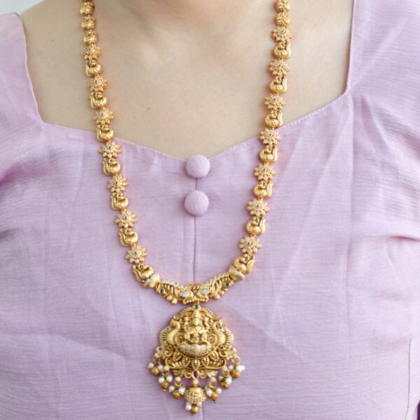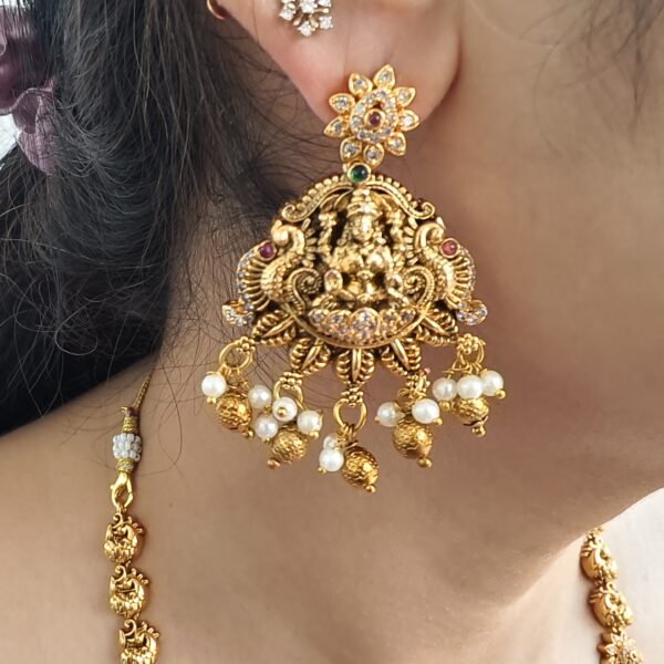 fj1967 antique finish lakshmi pendant long neckset with white stones and pushbackearrings