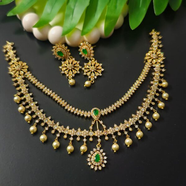 fj2639 2 step cz white with green stone neckaet with pushback earrings