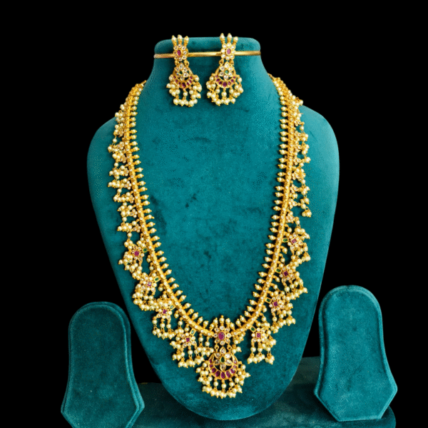Nakshi polish lakshmi pendant with earrings pearl nakshi ball mala 24inch