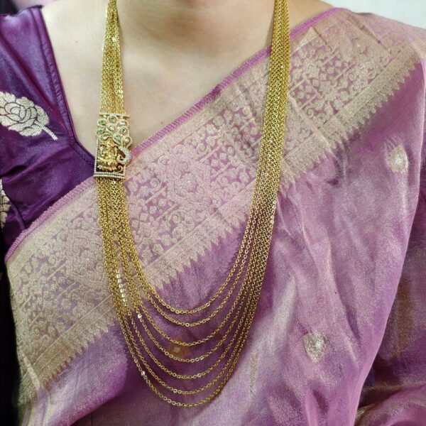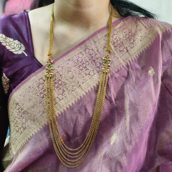 fj2579 Antique finish cz rubi stone side pendant 5step chandraharam 30inch