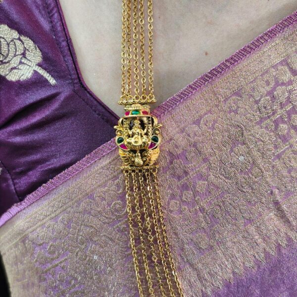 fj2583 Antique finish jadav kundan lakshmi side pendant 5 step chandraharam