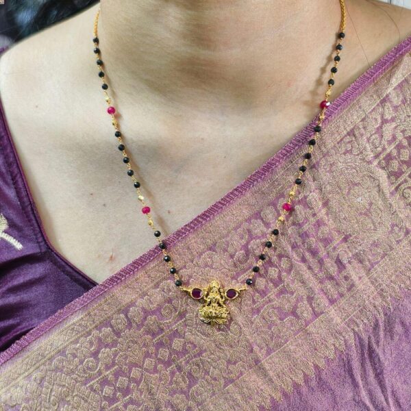 fj2585 rubi stone lakshmi pendant 18inch black diamond chain
