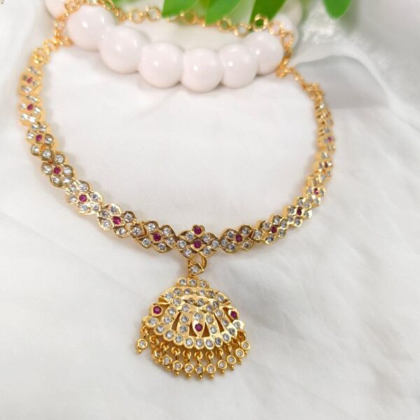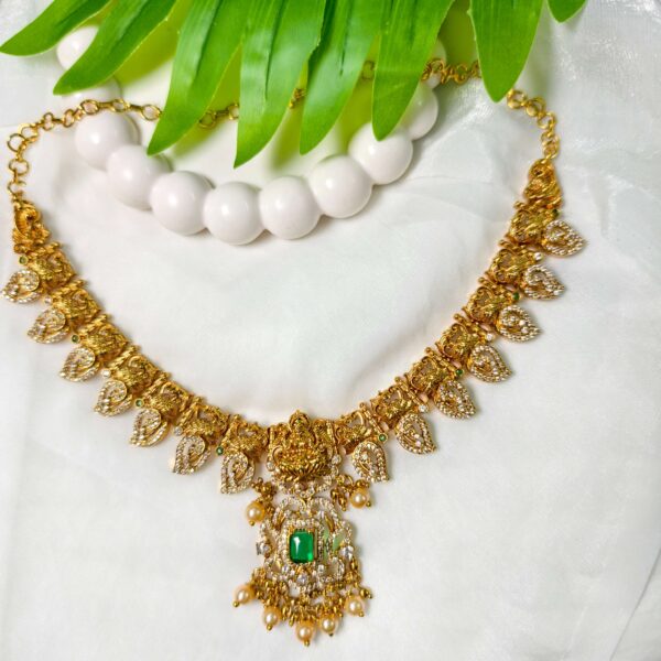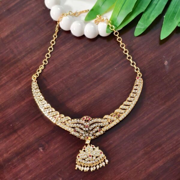 fj2568 real gold look ramparivar neckset with screwback earrings and backchain
