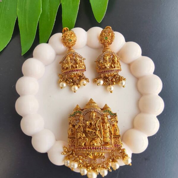 fj2565 Antique finish real gold look ramparivar pendant with screwback earrings