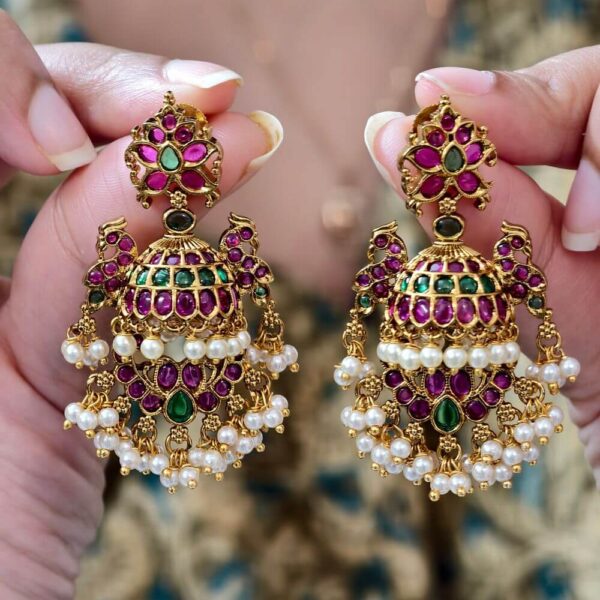 fj2575 rubi emerald potastone peacock party wear pushback jhumkas