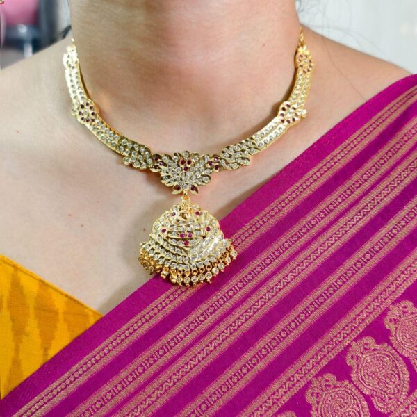 fj2561 semi panchaloham whitestone neckset with backchain and screwback earrings