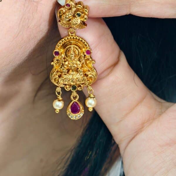 fj2547 real gold replica lakshmi antique finish neckset with screwback earrings