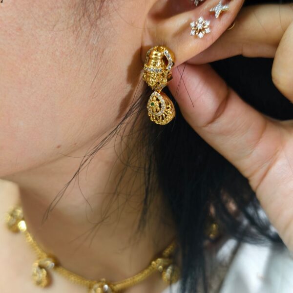 fj2602 real gold look antique finish balaji Naan neckset with screwback earrings
