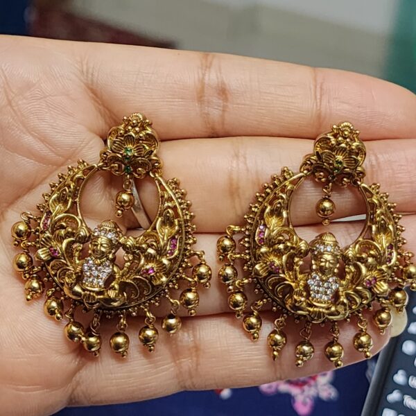 Antique polish lakshmi idol chandbali earrings pushback earrings