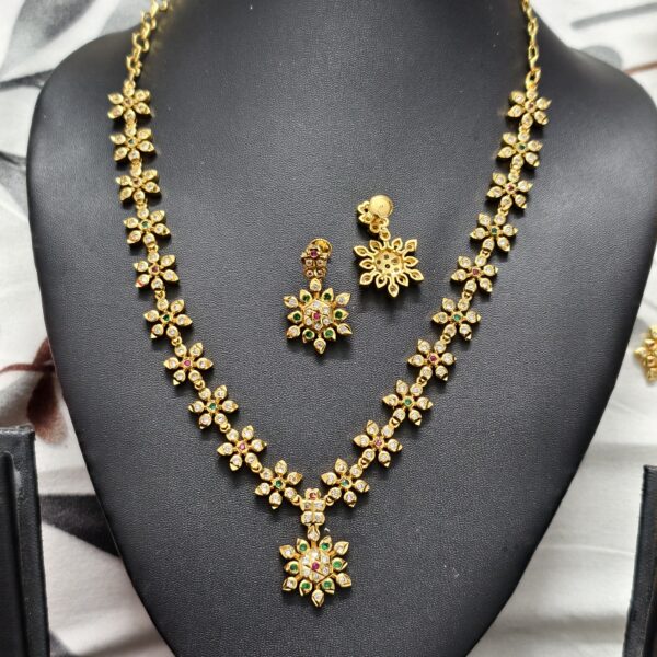 panchaloham flower neckset multi colour with screw back earrings