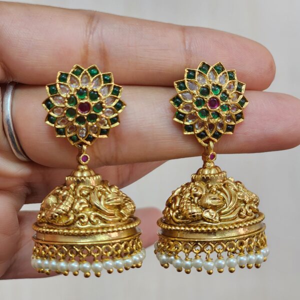 PADMAM WITH PEACOCK NAKSHI GOLD LOOK ALIKE JHUMKAS