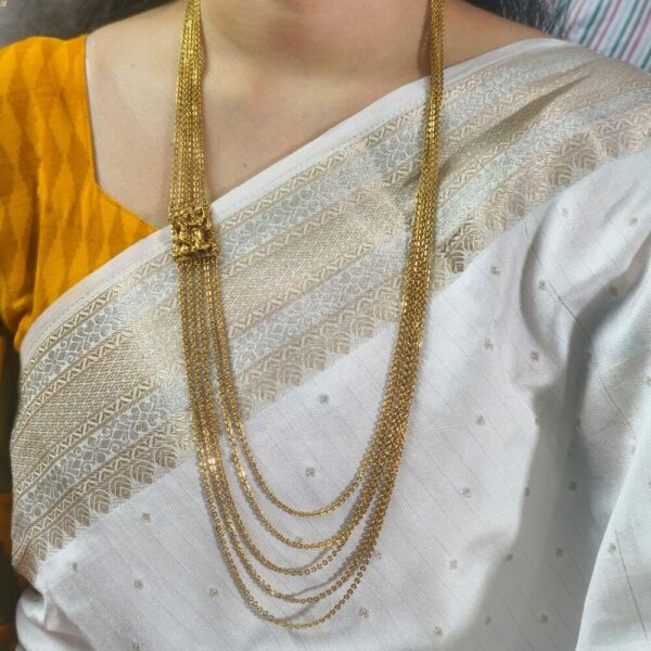 fj2607 real gold look Antique finish Krishna side pendant chandraharam30inch