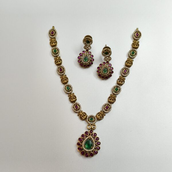 pota ruby and green antique finish lakshmi neckkset with earrings