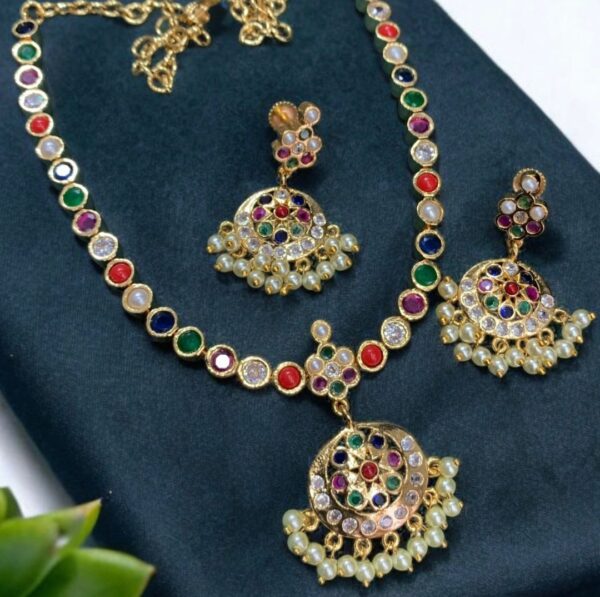 Traditional Navratan neckset with backchain earrings